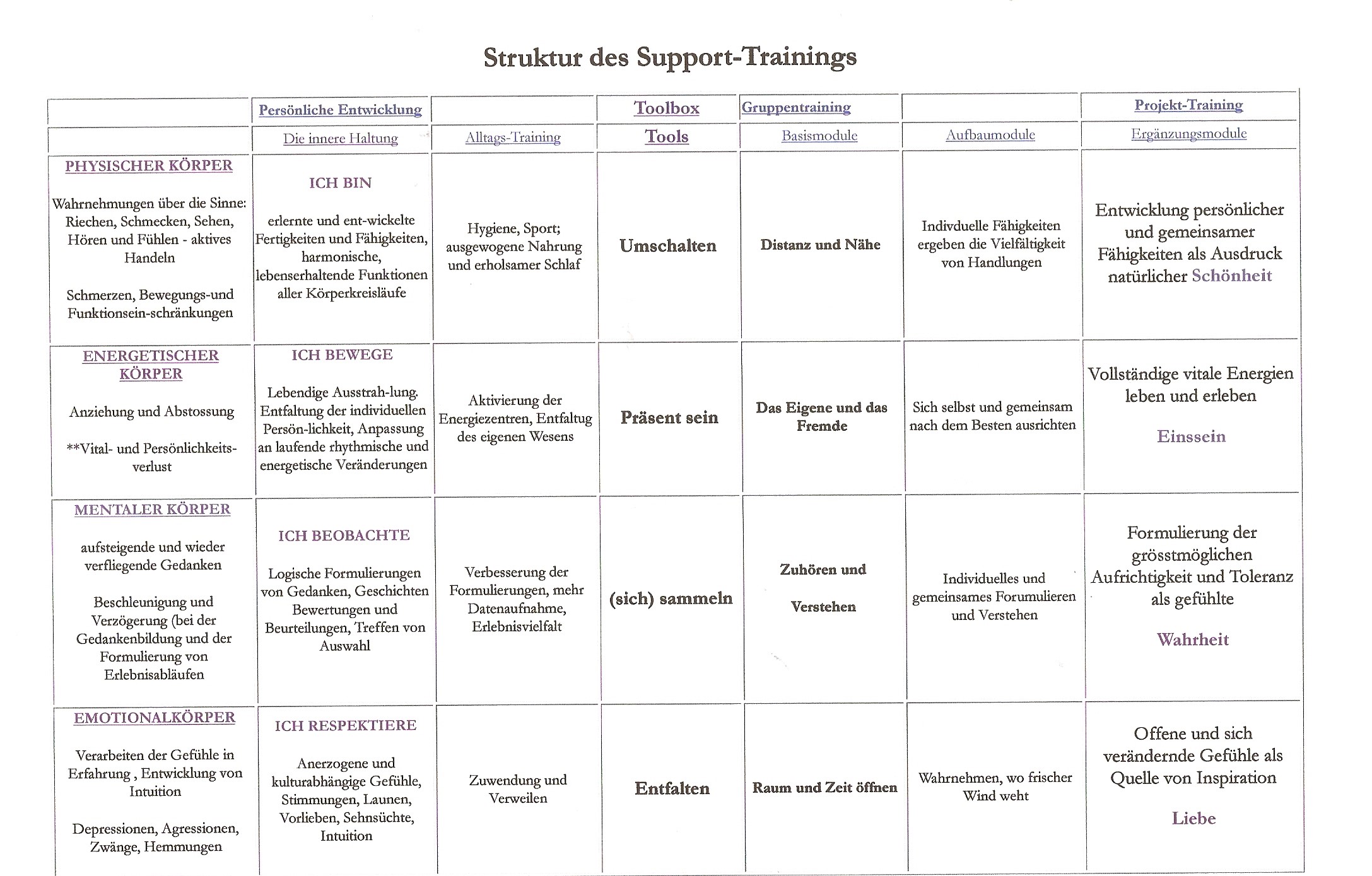 Struktur des Supporttrainings auf einen Blick